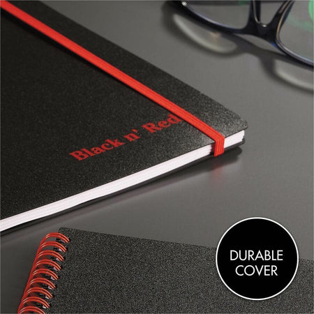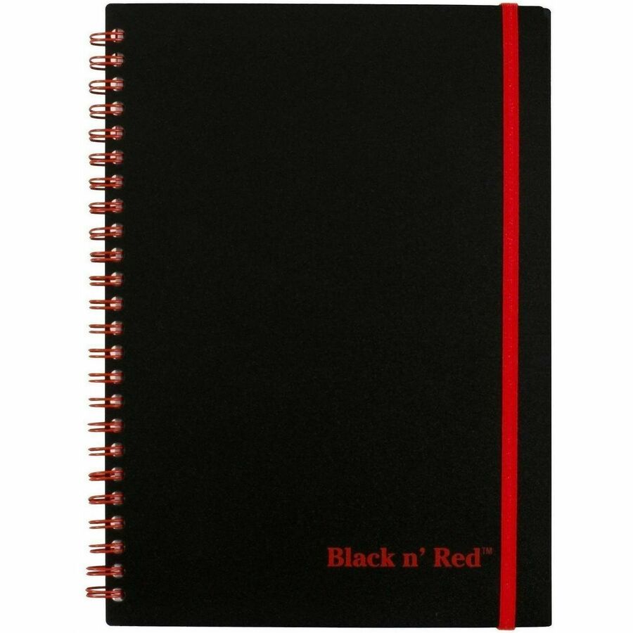 Black n' Red Business Notebook - 70 Sheets - Wire Bound - 24 lb Basis Weight - A5 - 5 7/8" x 8 1/4" Sheet Size - White Paper - Red Binding - Black Polypropylene Cover - Perforated, Wipe-clean Cover, Rigid, Strap, Micro Perforated - 1 Each