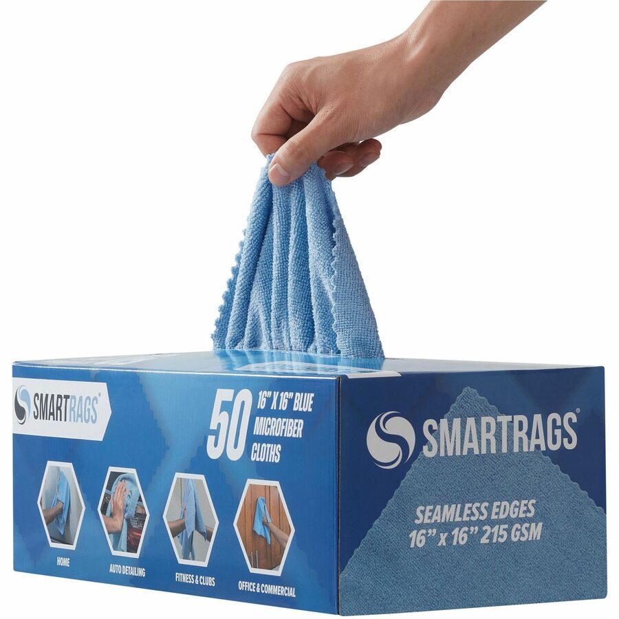 Monarch Smart Rags Microfiber Cloths, 16" x 16", 50 / Box - Reusable, Streak-free, Lint-free, Dirt Resistant, Grime Resistant - Blue