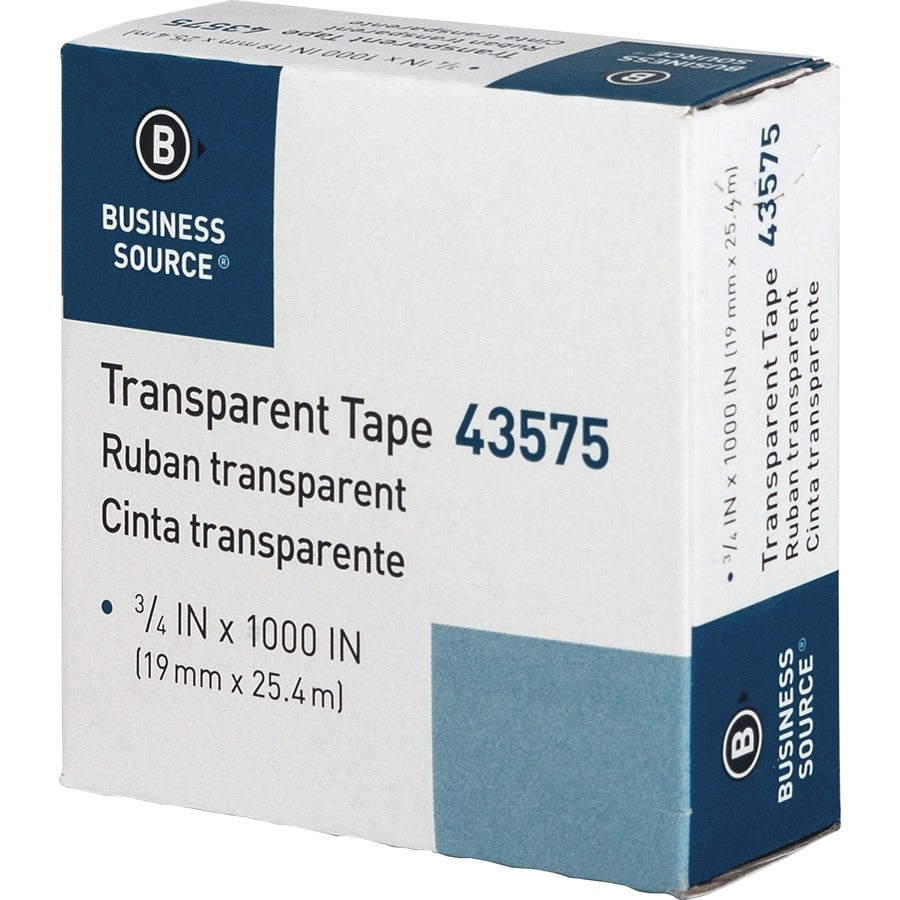 Business Source All-purpose Transparent Glossy Tape - 27.78 yd Length x 0.75" Width - 1" Core - Clear - For Sealing, Mending, Protecting - 12 / Pack
