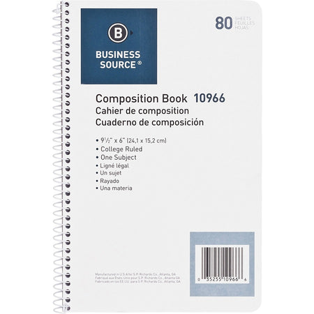 Business Source College Ruled Composition Books - 80 Sheets - Wire Bound - 16 lb Basis Weight - 6" x 9 1/2" Sheet Size - White Paper - Stiff-back - 1 Each