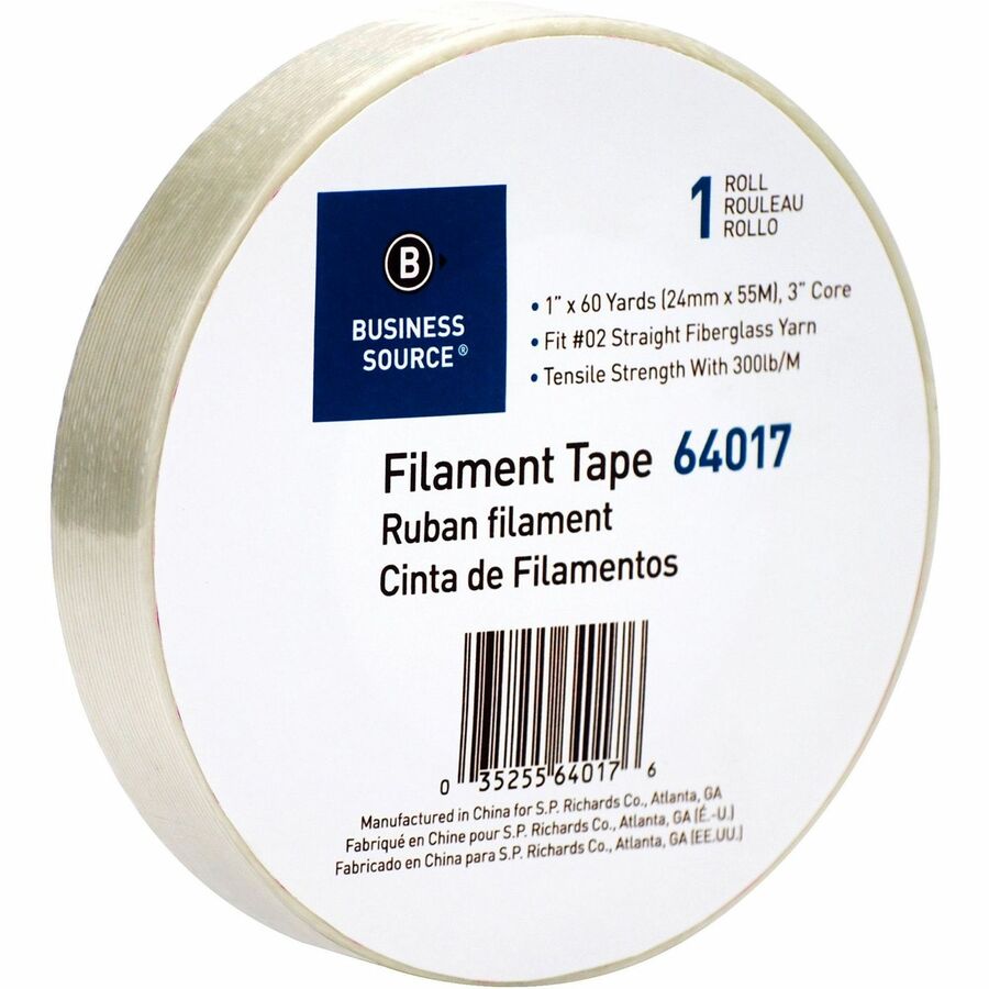 Business Source Heavy-duty Filament Tape - 60 yd Length x 1" Width - 3" Core - White - Fiberglass Filament Roll - 1 Roll