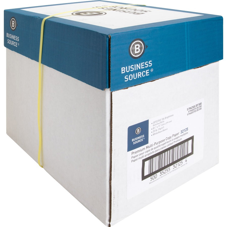 Business Source Premium Multipurpose Copy Paper - White - 92 Brightness - Letter - 8 1/2" x 11" - 20 lb Basis Weight - Acid-free - White - 2500 Sheets - 500 Sheets per Ream - 5 / Carton