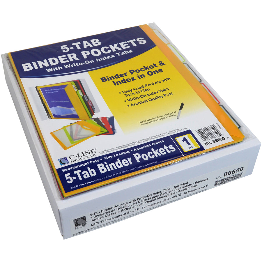 C-Line Write-on Tab Poly Binder Pockets - For Letter 8 1/2" x 11" Sheet - 3 x Holes - Ring Binder - Rectangular - Lime Green, Charcoal Gray, Raspberry Red, Steel Blue, Amber Orange - Poly - 5 / Set