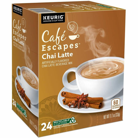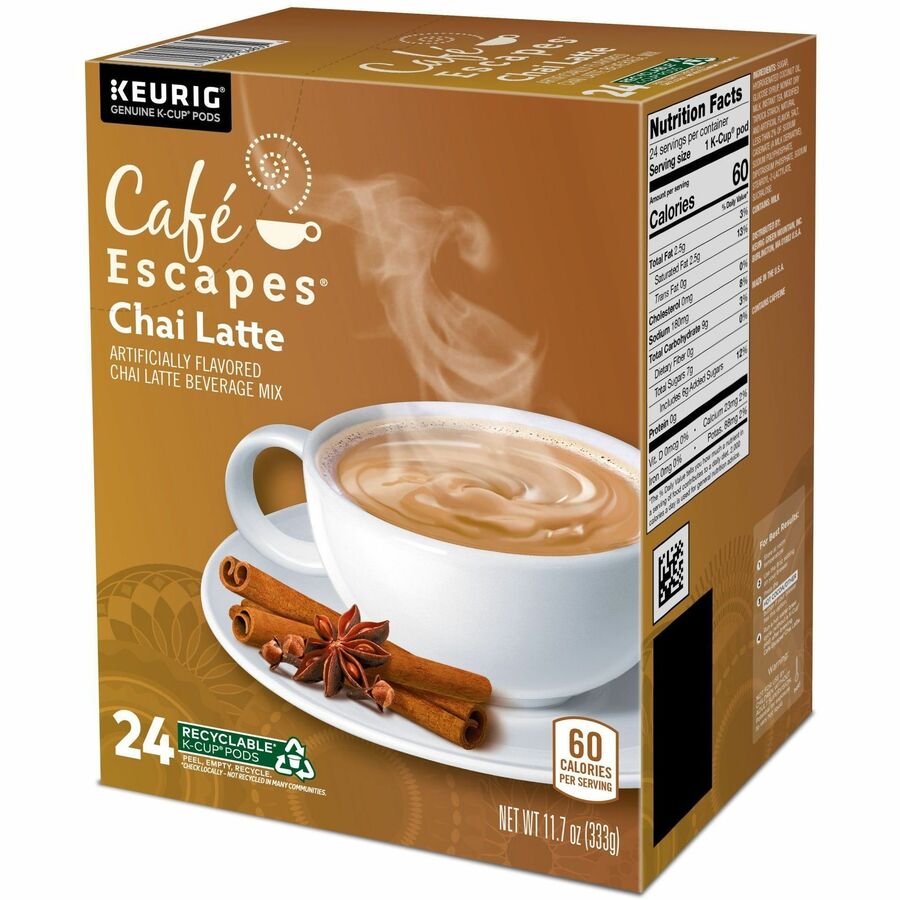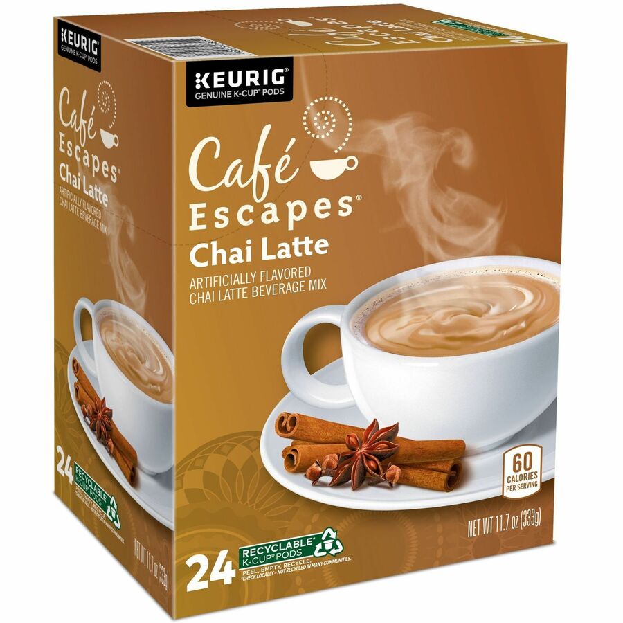 Café Escapes® Chai Latte Single-Serve K-Cup Pods, 24 Count Black Tea K-Cup - Compatible with Keurig K-Cup Brewer - Black Tea - 0.5 oz - 24 K-Cup - Kosher - 24 / Pack