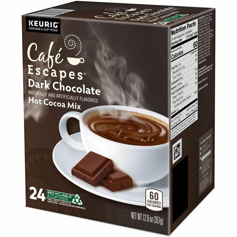 Café Escapes® K-Cup, Pod Dark Chocolate Hot Cocoa, Keurig Single-Serve K-Cup Pods, 24 Count - Dark - K-Cup, Pod - Dark Chocolate, Hot Cocoa - Kosher - 24 / Pack