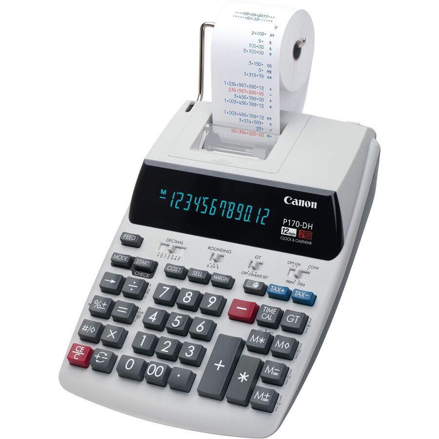 Canon P170-DH-3 Printing Calculators - Calendar, Clock, Item Count, Sign Change, Compact - 12 Digits - 3" Height x 9.6" Width x 15.2" Length - White - 1 Each