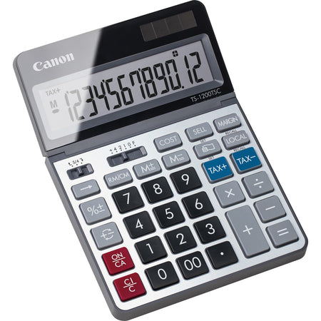 Canon TS1200TSC 12-digit Desktop Calculator - Extra Large Display - 12 Digits - LCD - Solar Powered - 7" Height x 5" Width x 0.7" Depth - Metal - Desktop - 1 Each