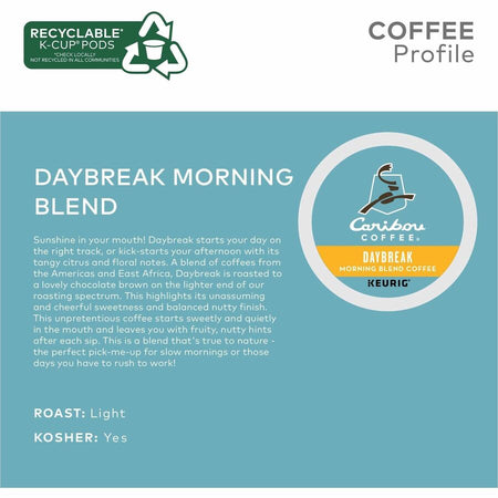 Caribou Coffee® K-Cup Daybreak Coffee - Compatible with Keurig Brewer - Regular - Light/Mild - K-Cup - 24 / Box