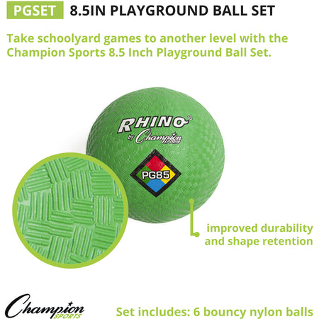 Champion Sports Playground Ball - 8.50" - Nylon - Red, Yellow, Green, Orange, Purple, Royal Blue - 6 / Set