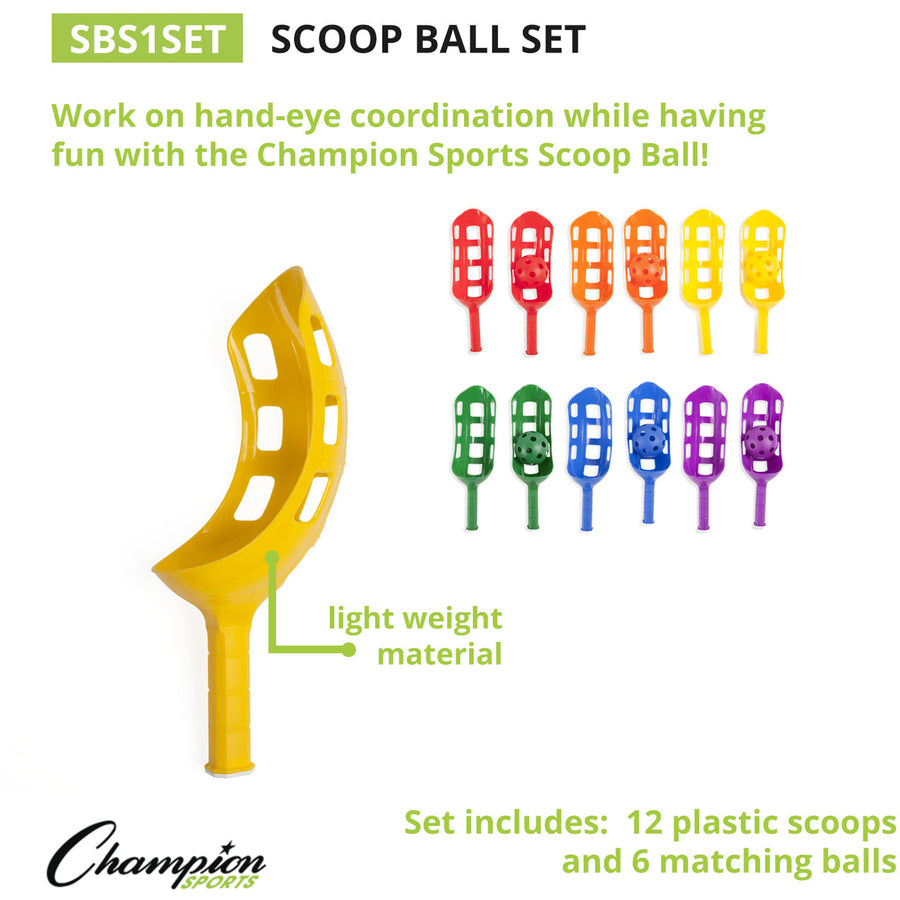 Champion Sports Scoop Ball Set - 2 Pair - Red, Orange, Yellow, Green, Blue, Purple - Plastic