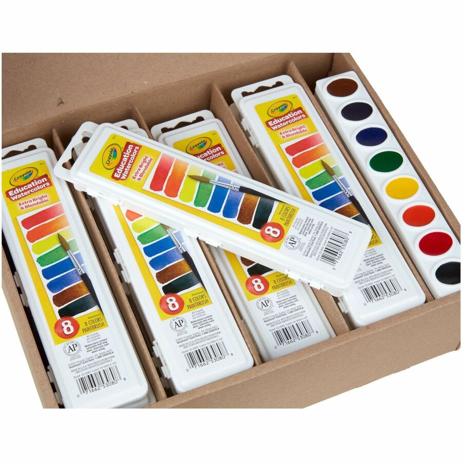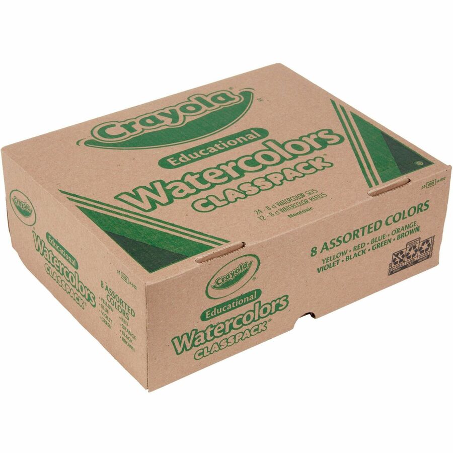 Crayola 8-Color Educational Watercolors Classpack - 8 Color(s) - Red, Yellow, Green, Blue, Brown, Purple, Black, Orange - 36 / Box