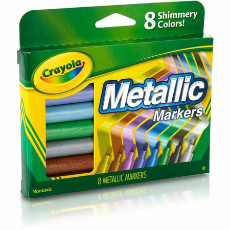 Crayola 8-color Metallic Markers - Cobalt Blue, Green Machine, Slick Silver, Copper Mine, Gold Ingot, Purple Steel, Black Iron, Pink Bling Ink - 8 / Set