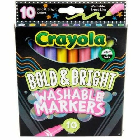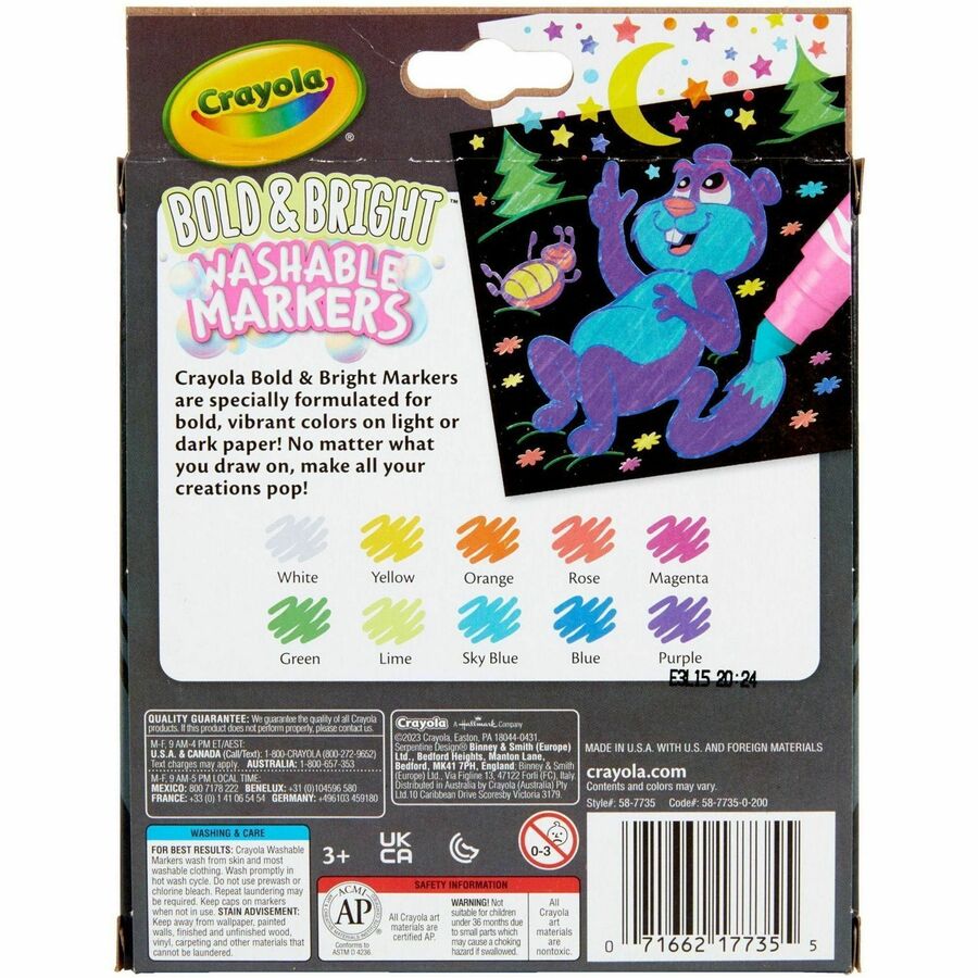 Crayola Bright/Bold Broad Line Markers - Broad Conical Marker Point - Washable - Assorted Ink - Water Based - Assorted Barrel - 10 / Pack