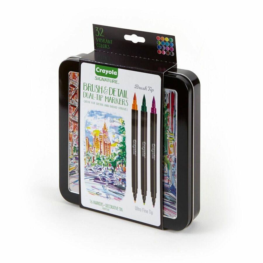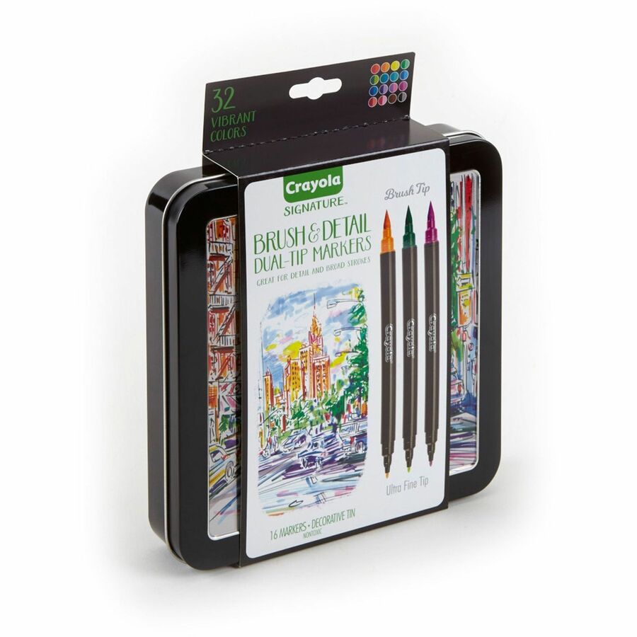 Crayola Brush & Detail Dual Tip Markers - Ultra Fine Brush Marker Point - 16 / Set