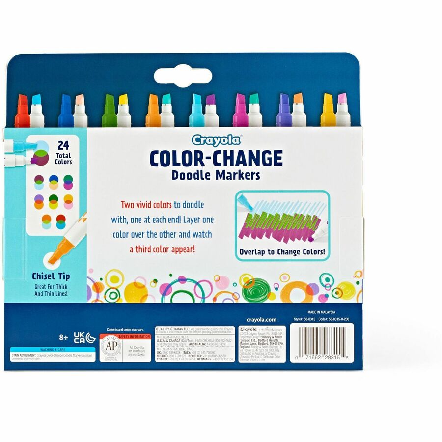 Crayola Color Change Doodle Markers - Chisel Marker Point - Multicolor Ink - 8 / Pack