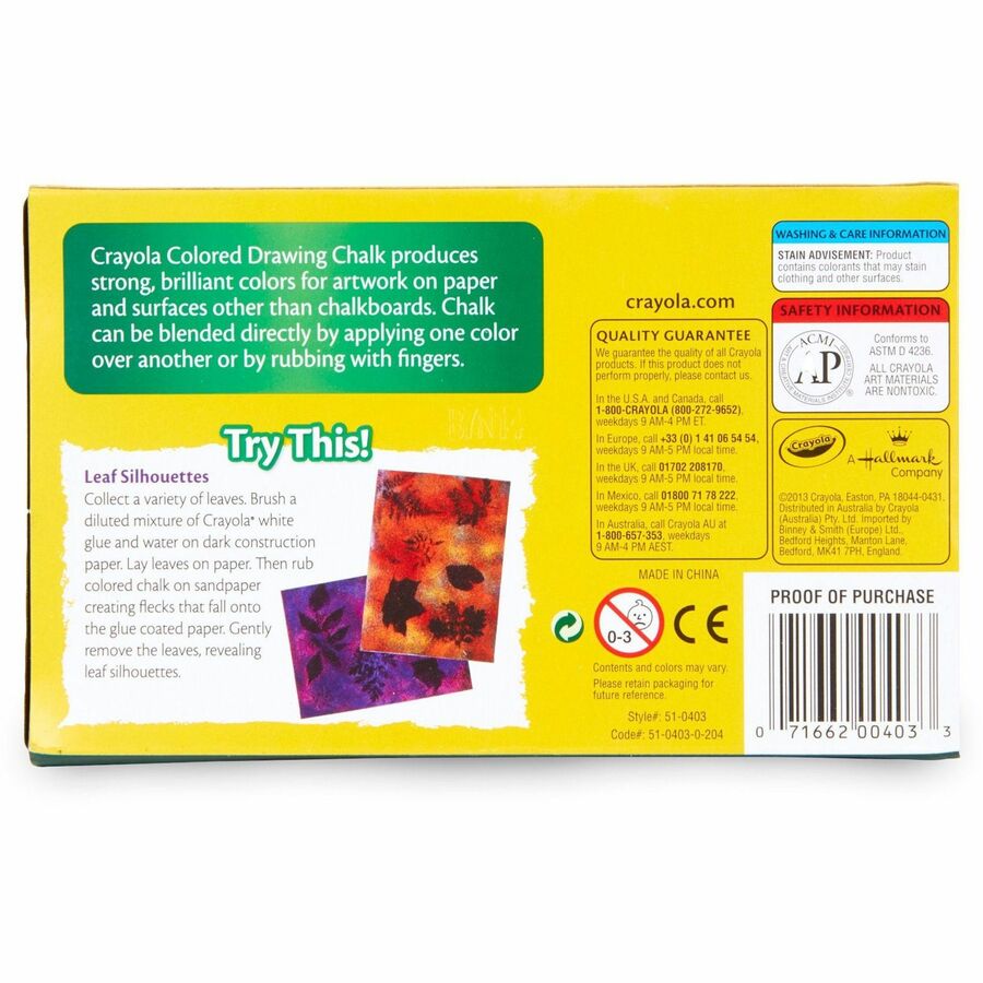 Crayola Colored Drawing Chalk Sticks - 3.2" Length x 0.4" Diameter - Assorted - Non-toxic - 12 / Box