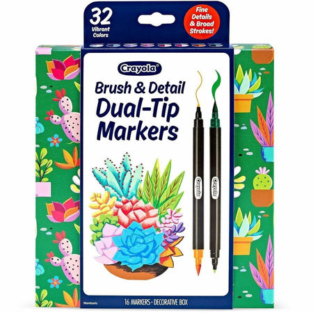 Crayola Dual-Ended Markers - Brush, Ultra Fine, Chisel Marker Point - Multi Ink - Water Based - 16 / Pack
