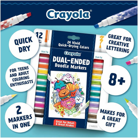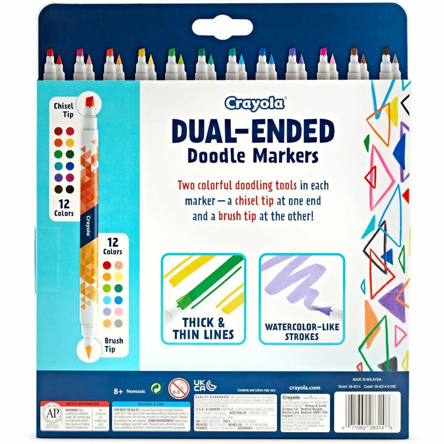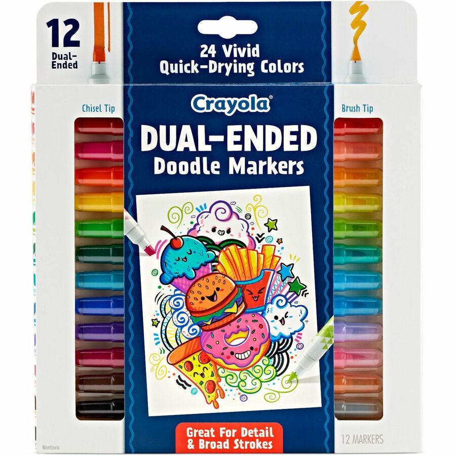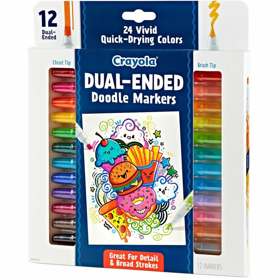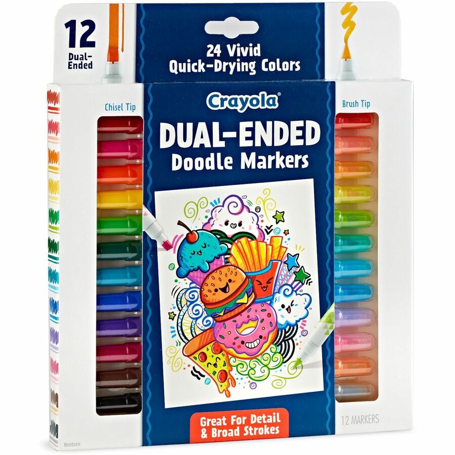 Crayola Dual-Ended Markers - Chisel, Brush Marker Point - Multicolor Ink - 12 / Pack
