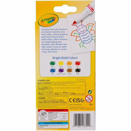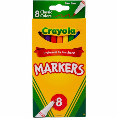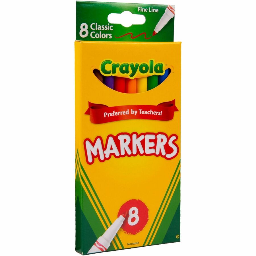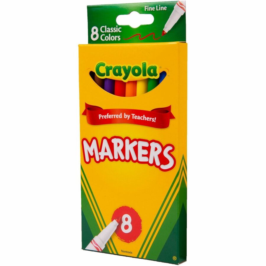 Crayola Fine Tip Classic Markers - Fine Marker Point - Assorted, Orange, Yellow, Green, Blue, Violet, Brown, Black Ink - Water Based - 8 / Set