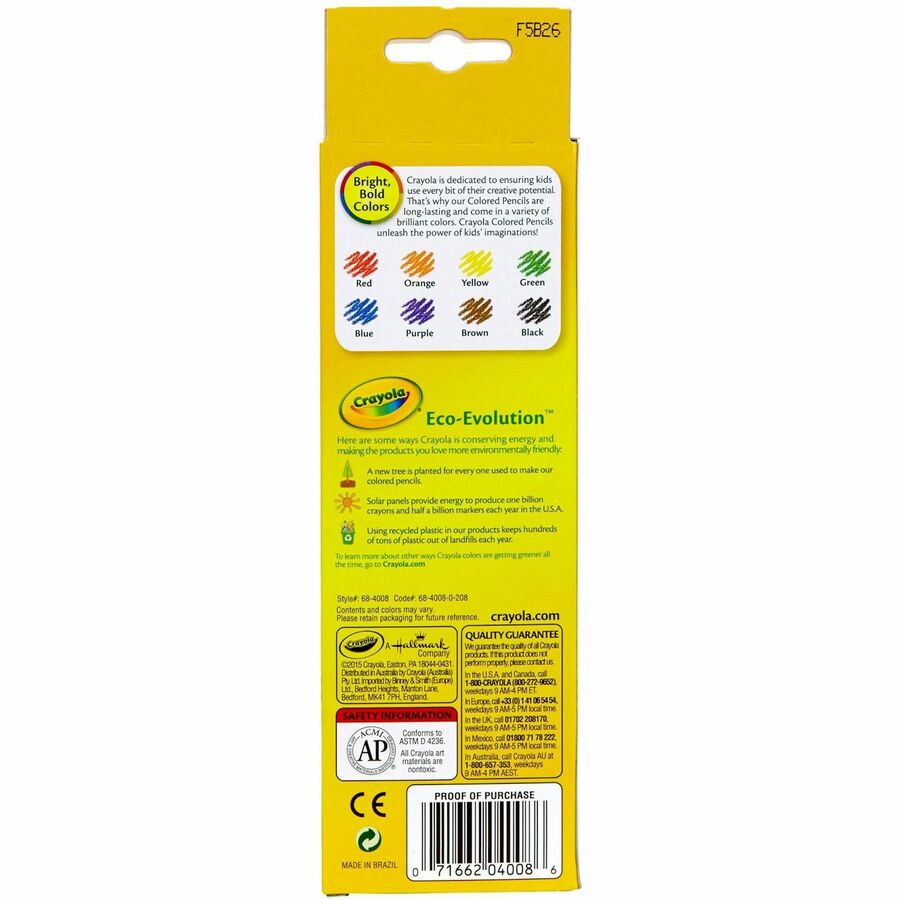 Crayola Presharpened Colored Pencils - 3.3 mm Assorted Lead - Wood Barrel - 8 / Set