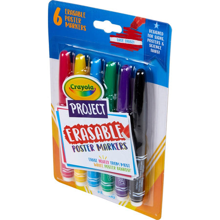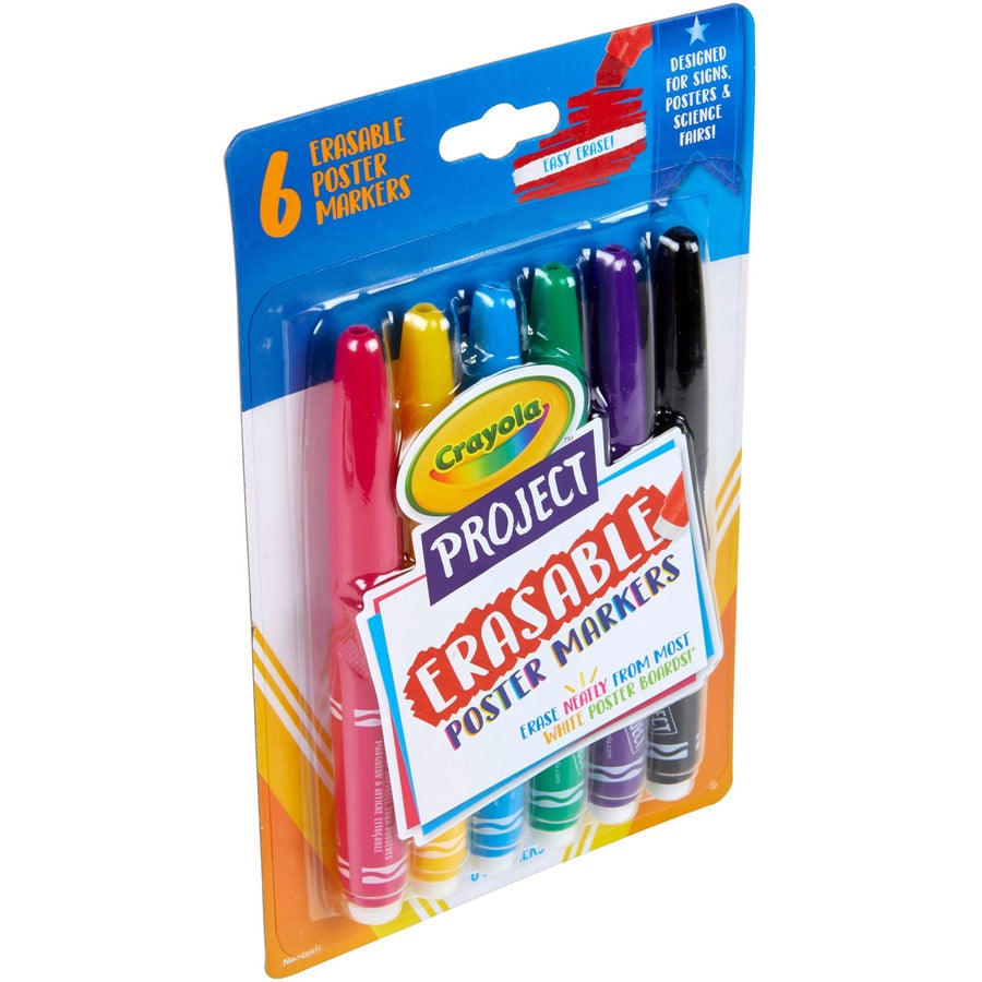 Crayola Project Erasable Poster Markers - Chisel Marker Point - Erasable - Red, Yellow, Green, Blue, Purple, Black Ink - 6 / Pack