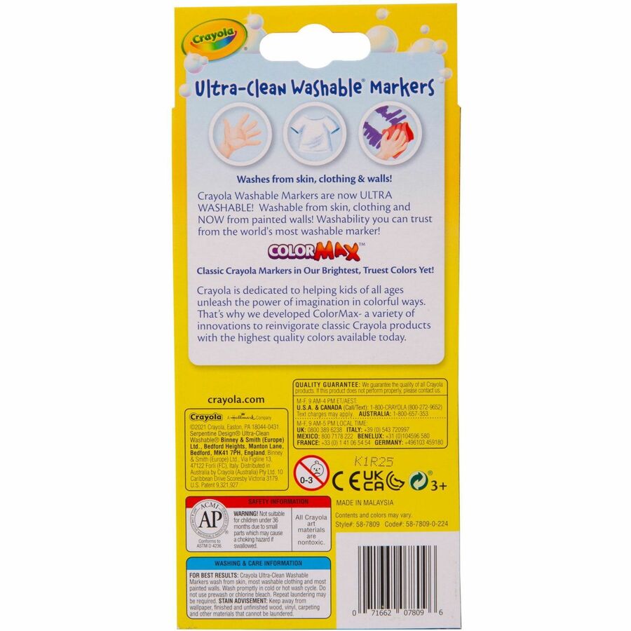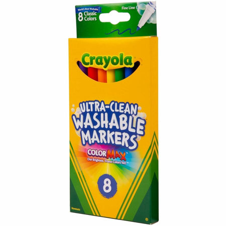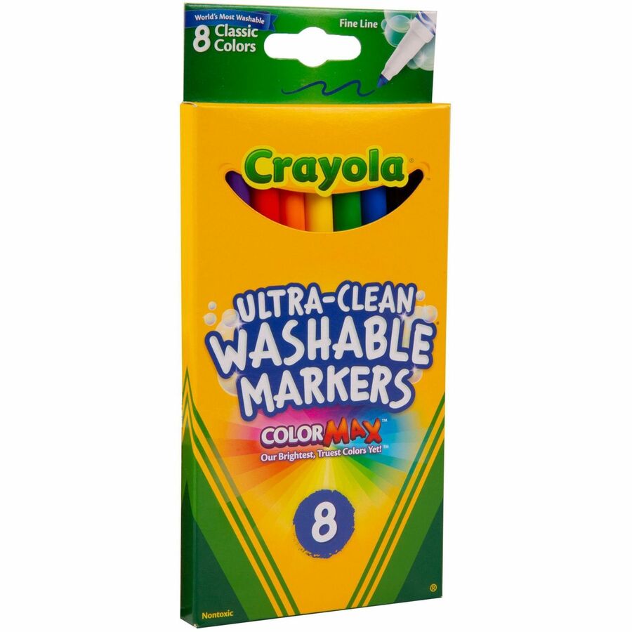 Crayola Thinline Washable Markers - Fine Marker Point - Washable - Red, Orange, Yellow, Green, Blue, Violet, Brown, Black Ink - Water Based - 8 / Set