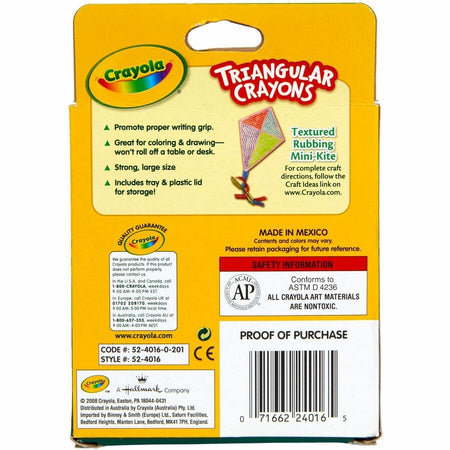 Crayola Triangular Anti-roll Crayons - Assorted - 16 / Box