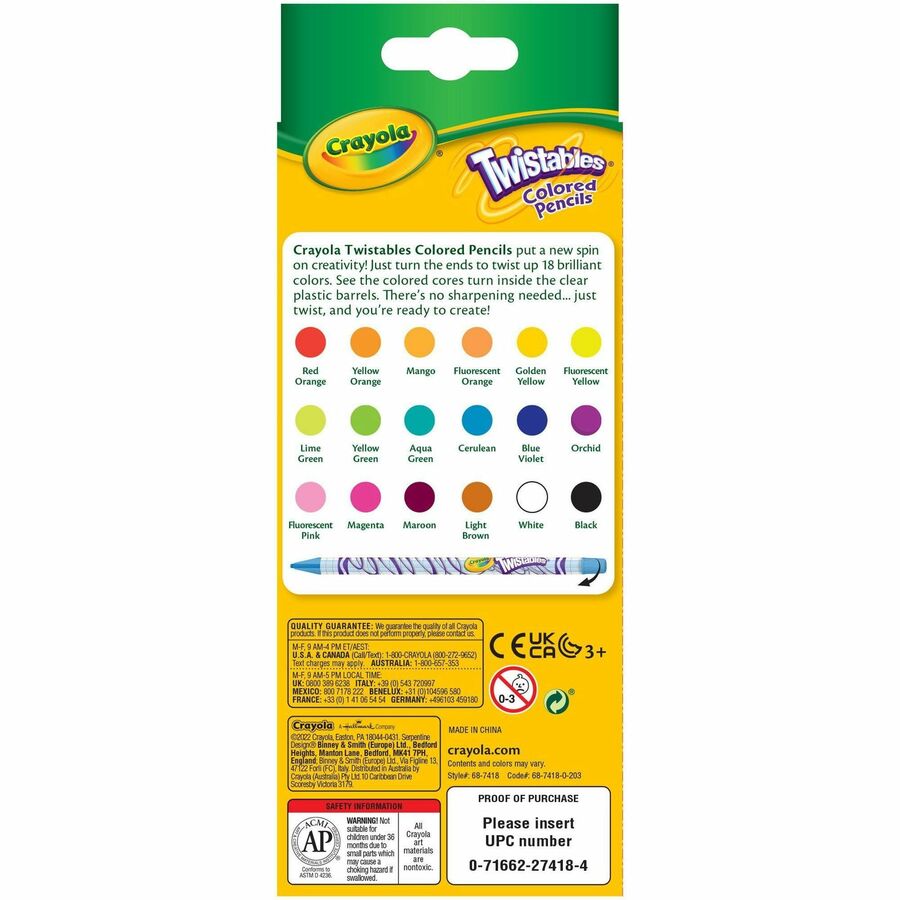 Crayola Twistables Colored Pencils - Assorted Lead - Clear Plastic Barrel - 18 / Set