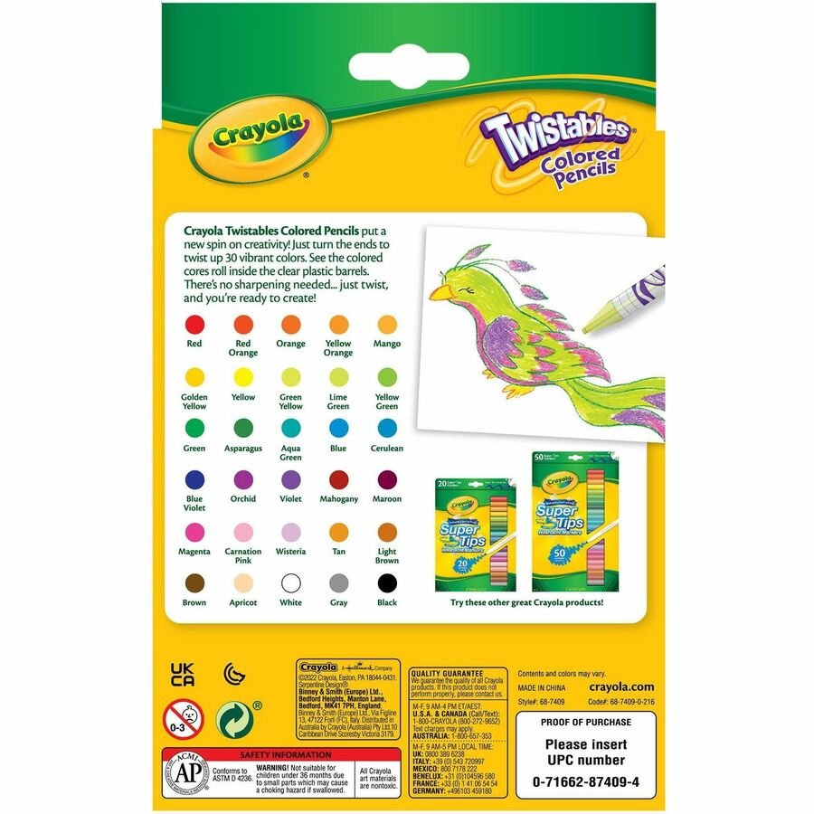 Crayola Twistables Colored Pencils - Assorted Lead - Clear Plastic Barrel - 30 / Set