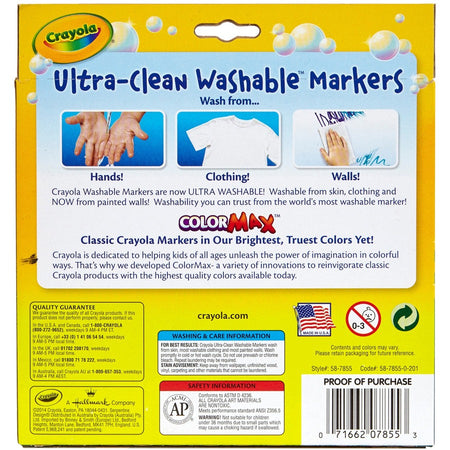 Crayola Ultra-Clean Washable Markers - Broad Conical Marker Point - Washable - Assorted Ink - Water Based - Assorted Barrel - 10 / Pack