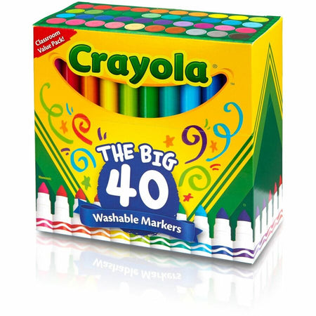 Crayola Ultra-Clean Washable Markers - Conical Marker Point - Washable - Assorted Ink - 40 / Set