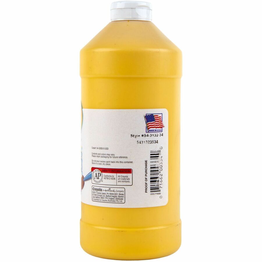 Crayola Washable Tempera Paint - 1 Color(s) - Yellow - 2 lb - Washable - 1 Each