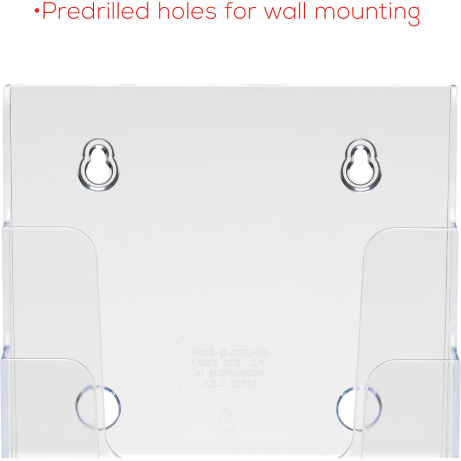 This compact document holder is designed to efficiently display a variety of literature in its four 6-3/8" wide brochure-size pockets. Made of clear and durable plastic, this four-compartment holder is both versatile and space-saving. Whether used freestanding or mounted on a wall, this document holder offers a practical solution for organizing and showcasing your materials.