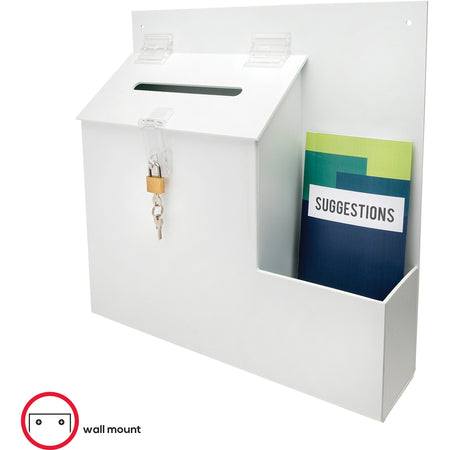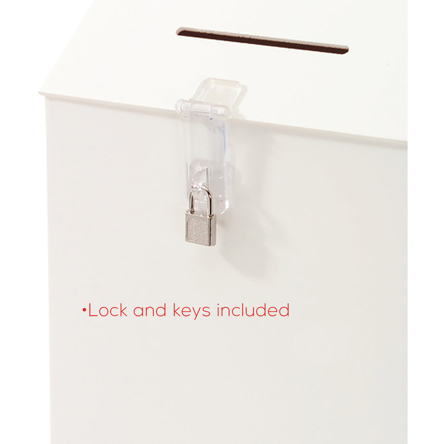Deflecto Suggestion Box - External Dimensions: 13.8" Width x 3.6" Depth x 13" Height - Key Lock Closure - Plastic - White - For Suggestion Card - 1 Each