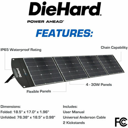 DieHard 120W Solar Panel: Portable Power Station - 31.5" x 10.5 ft - Rich Black