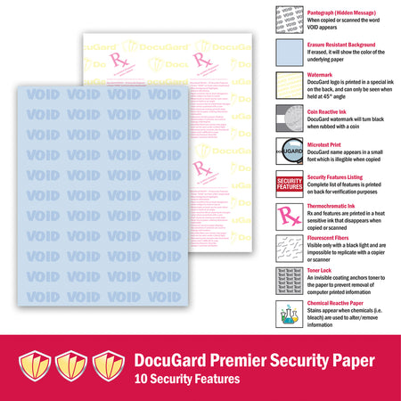 DocuGard Premier Medical Security Paper - Letter - 8 1/2" x 11" - 24 lb Basis Weight - Tamper Resistant, Watermarked, Chemical Reactive, CMS Approved - Blue - 500 / Ream