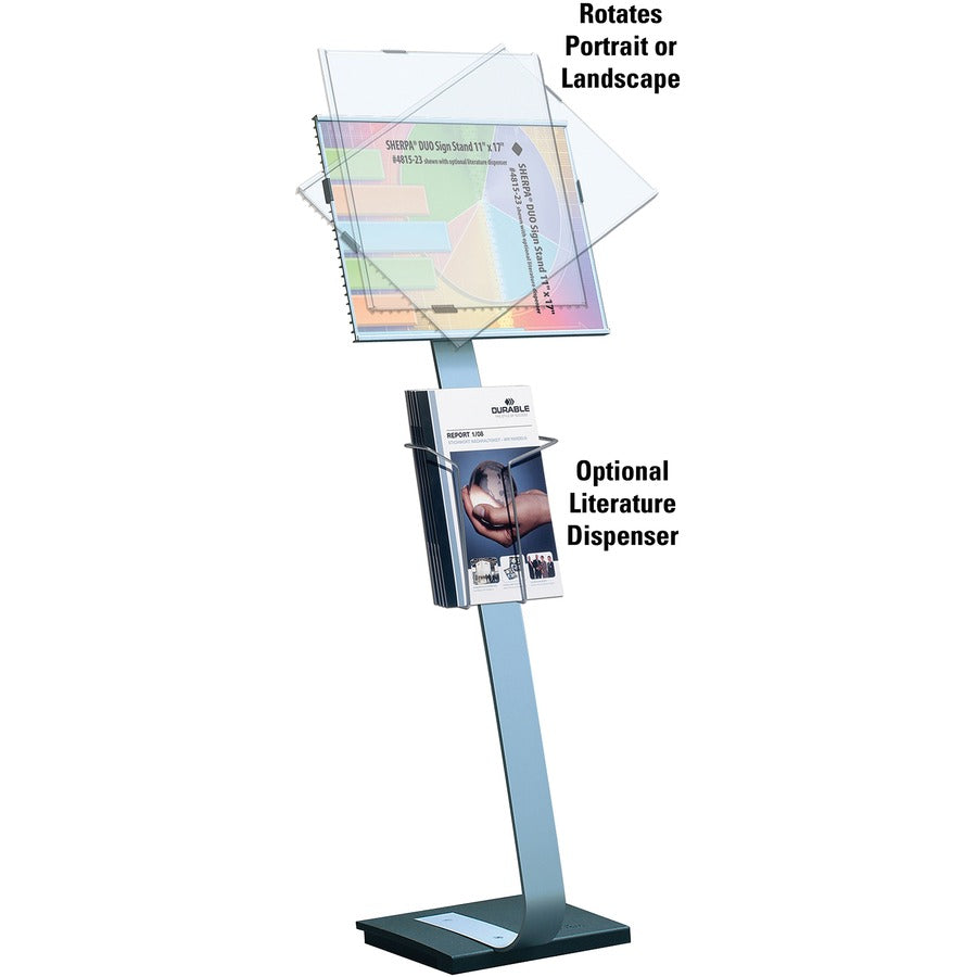 Durable Info Sign Duo Floor Sign Stand - 50" Height x 17" Width x 11.50" Depth - Aluminum, Stainless Steel, Iron - Gray, Black