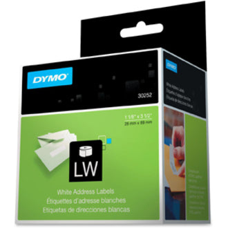 Dymo LabelWriter Address Labels - 1 1/8" Width x 3 1/2" Length - White - Paper - Self-adhesive - 350 / Roll - 2 / Box