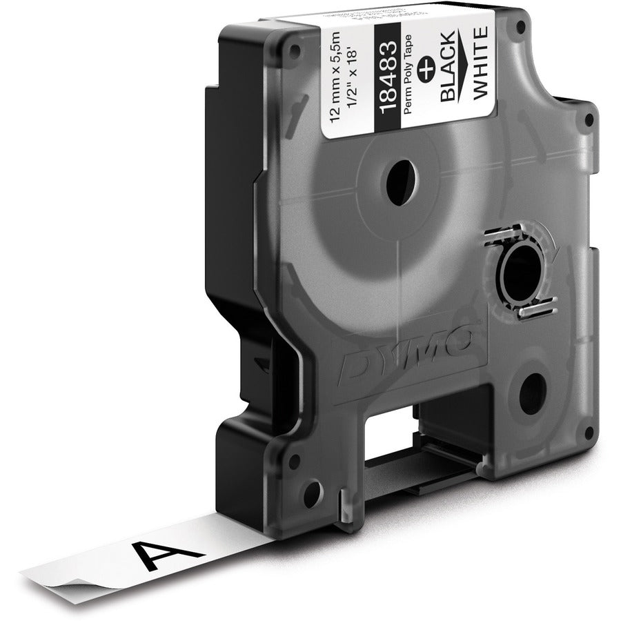 Dymo Rhino Permanent Poly Labels - 1/2" Width - Permanent Adhesive - Thermal Transfer - White, Black - Polyester - Easy Peel - 1 Each