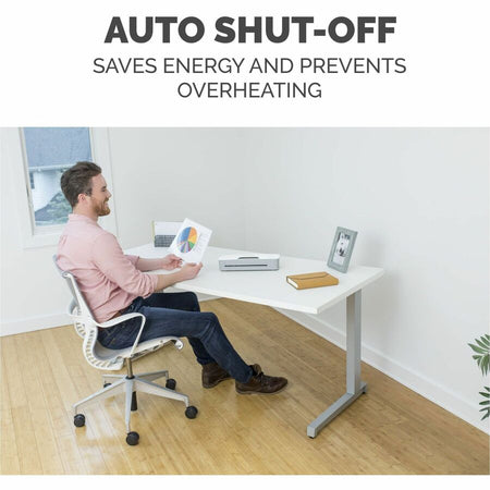 Designed for efficiency, this laminator boasts automatic shutoff functionality to reduce energy waste and prevent overheating, promoting a safe and sustainable work environment. Equipped with a laminating pouch starter kit, this versatile unit supports both hot and cold lamination of 3mm or 5mm pouches up to 9-1/2", catering to a variety of document sizes.