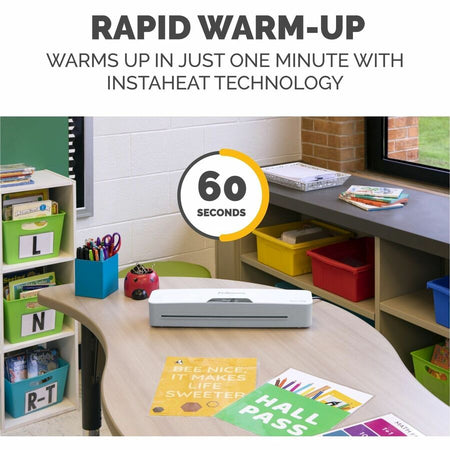 Enhance your document protection with the Personal Laminator featuring innovative InstaHeat technology for a swift one-minute warm-up, ensuring you can dive into your tasks promptly. The user-friendly release lever allows effortless re-centering or removal of pouches, streamlining your laminating process.