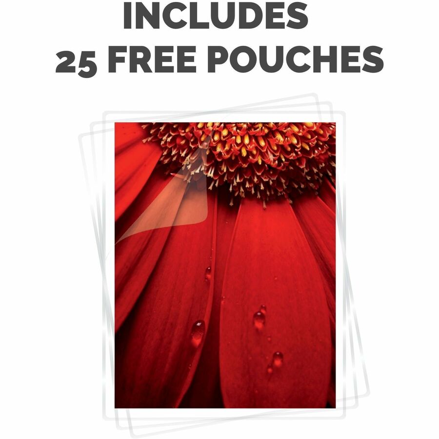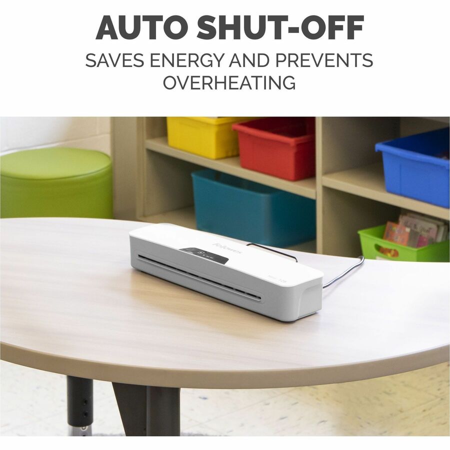 Equipped with automatic shutoff functionality, this laminator minimizes energy waste and prevents overheating, promoting safety and efficiency in your workspace. The included laminating pouch starter kit complements the unit's hot and cold lamination capabilities, accommodating 3mm or 5mm pouches up to 12-1/2" in size.