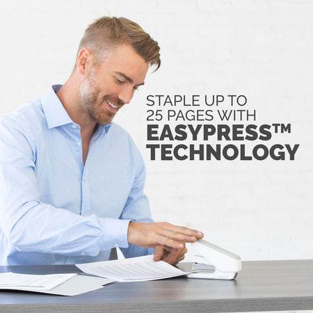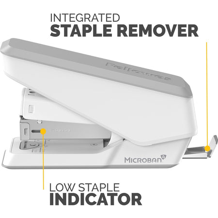 Fellowes LX840 Half Strip EasyPress Stapler White - Holds Upto 105 Staple - Half Strip - White - Metal - 1 Each
