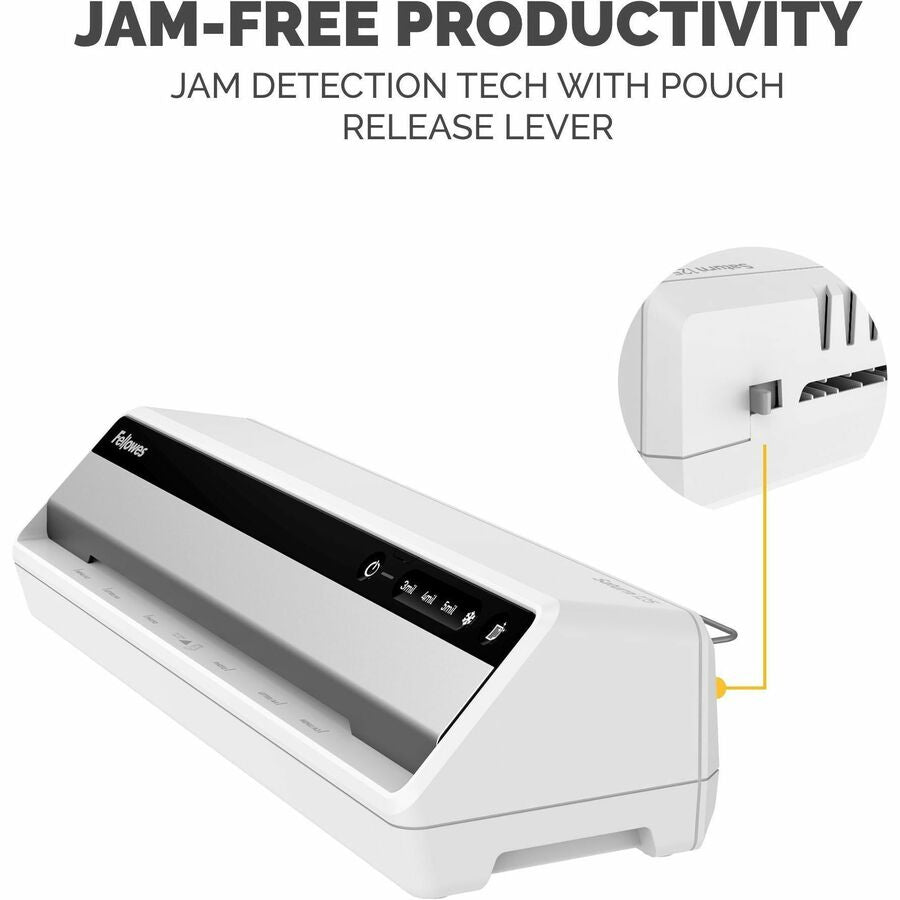 Equipped with a Pouch Tracking System, this laminator detects and alerts users in case of a misfeed, ensuring hassle-free operation. The auto shutoff feature not only saves energy but also prevents overheating, promoting safety and peace of mind.