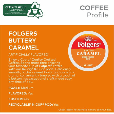 Folgers® K-Cup Buttery Caramel Coffee - Compatible with Keurig K-Cup Brewer - Medium - 24 K-Cup - K-Cup - Buttery Caramel, Caramel, Arabica - Kosher - 24 / Box