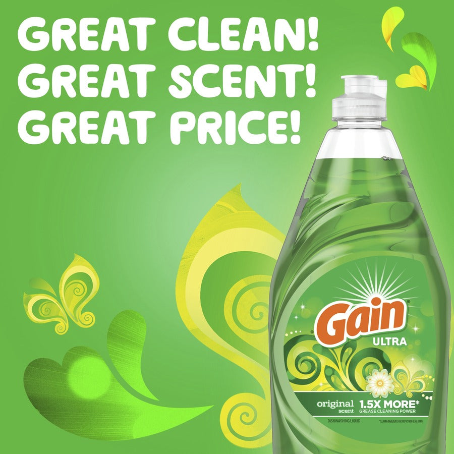 Gain Ultra Original Scent Dishwashing Liquid - 8 fl oz (0.3 quart) - Clean Scent - Green - 12 / Carton