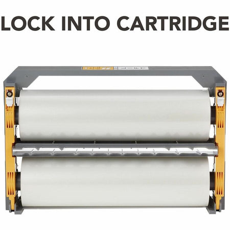 The reloadable cartridge fits seamlessly into the Foton 30 Laminator without the need for threading, ensuring a hassle-free experience. Color-coding makes it easy to match the refill to your cartridge, with an orange indicator on the 5 mil film refill corresponding to the indicator on the reloadable cartridge.