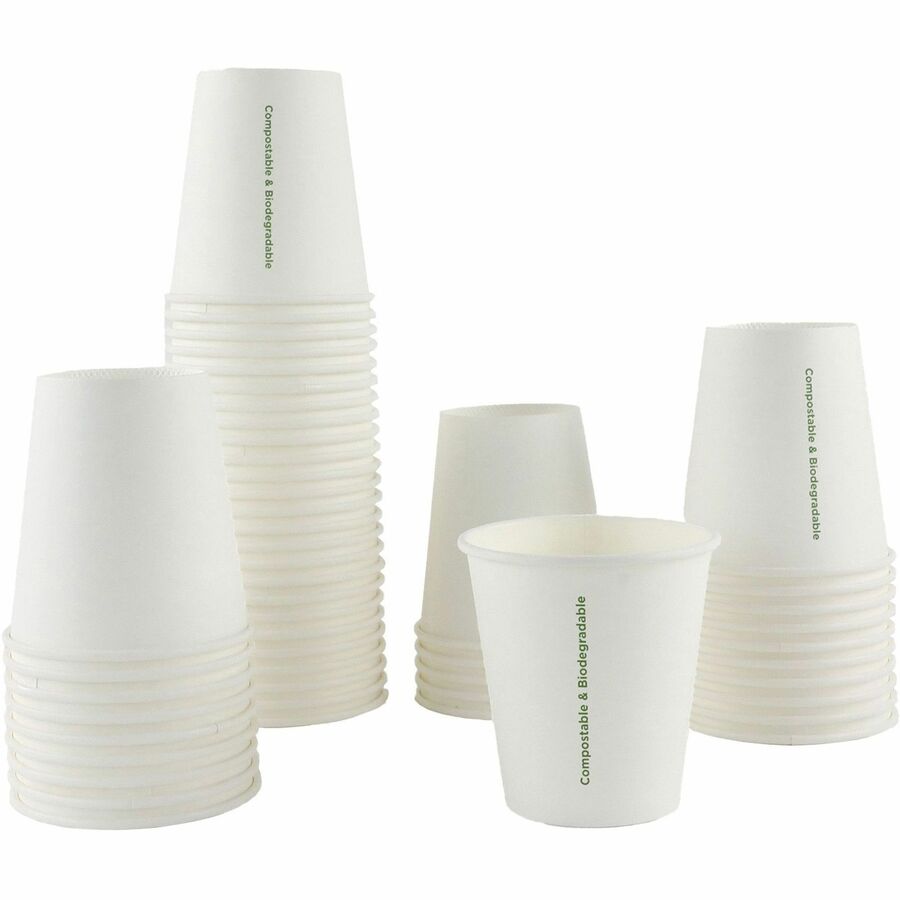 Genuine Joe 10 oz Eco-friendly Paper Cups - 50 / Pack - 10 fl oz - 20 / Carton - White - Paper - Coffee, Tea, Hot Chocolate
