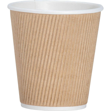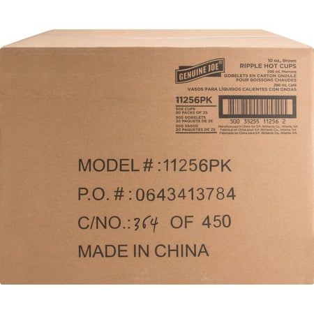 Genuine Joe 10 oz Rippled Hot Cups - 25 / Pack - 10 fl oz - 20 / Carton - Brown - Hot Drink, Beverage