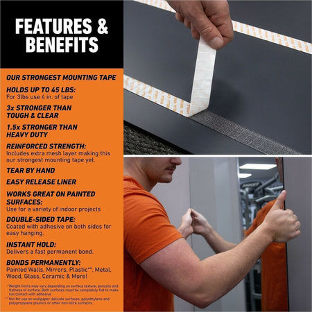 Gorilla Glue Max-Strength Mounting Tape - 5 ft Length x 1" Width - Black - For Mounting, Multi Surface, Indoor - 1 Each